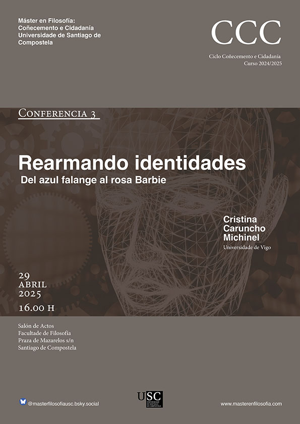 O vindeiro martes 29 de abril, ás 16.00h, Cristina Caruncho Michinel, profesora da Universidade de Vigo, presentanos “Rearmando identidades: do azul falanxe ata o rosa Barbie“.